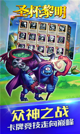 圣杯黎明变态版是一款Q版卡通风格的竞技手游,游戏采用全新的战斗玩法,多种不同主题关卡可供玩家挑战,趣味的放置战斗游戏,玩家可以收集众多的卡牌为自己战斗,感兴趣的赶紧下载吧!