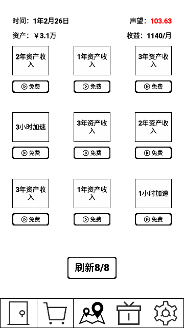* 精彩的商业经营模拟玩法,白手起家,一步步赚取更多的收益;