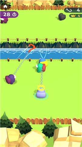 游戏中的角色非常可爱。玩家可以在游戏中进行各种冒险。你需要用钩子钩住坠落的玩家,这个游戏的卡通风格非常好看
