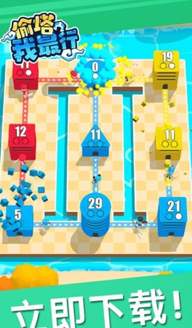 偷塔我最行是一款休闲的策略战争游戏。该游戏采用了卡通的画风,人物造型非常可爱。在游戏中,玩家需要通过进攻其他敌人,来扩大自己的军队士兵数量,带领你的队伍不断占领更多的据点。