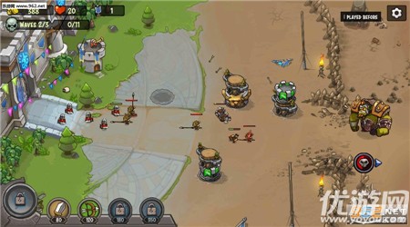 2.多种防御塔:玩家可以从普通箭塔开始,选择不同的分支进行升级,获得武士塔、炮塔、巫师塔等多种进化,目标消灭来袭敌人
