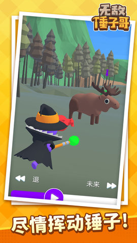 无敌锤子哥,在游戏中,玩家将化身为一把锤子。你被一群恶魔跟踪,需要逃离他们。玩家可以挥动他们自己的锤子来击败正面攻击你的敌人,同时,游戏中有很多地图。玩家可以选择他们喜欢的,他们还可以在商店购买其他形状和样式的锤子
