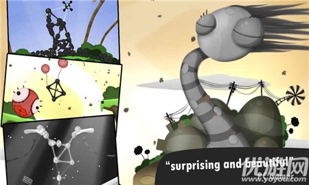这款游戏最大特点就是充分的利用了多种物理学原理,将建筑力学、结构力学等等复杂的技术融入到游戏当中,并产生出无尽的乐趣,而这项游戏也获得了无数大奖。游戏中,玩家需要操作一个个的粘土包,利用不同的粘土包来组合成各种各样的结构将多余的粘土包送到水管中,节省的单位越多获得的分数越多。