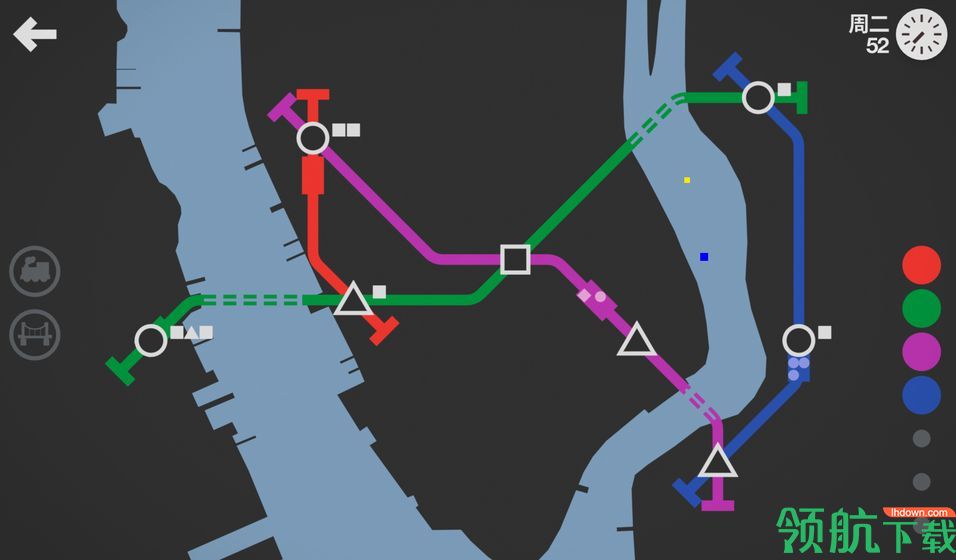 模拟地铁的游戏原则是为不断扩张的城市人口设计适用的地铁管网。在两个站点之间划线便可连接管路,让车厢穿梭其间。在新站点出现时,及时修改线路规划,不断提高运输效率。在有限的经费、资源面前权衡得失。你是否跟得上城市发展的脚步呢?