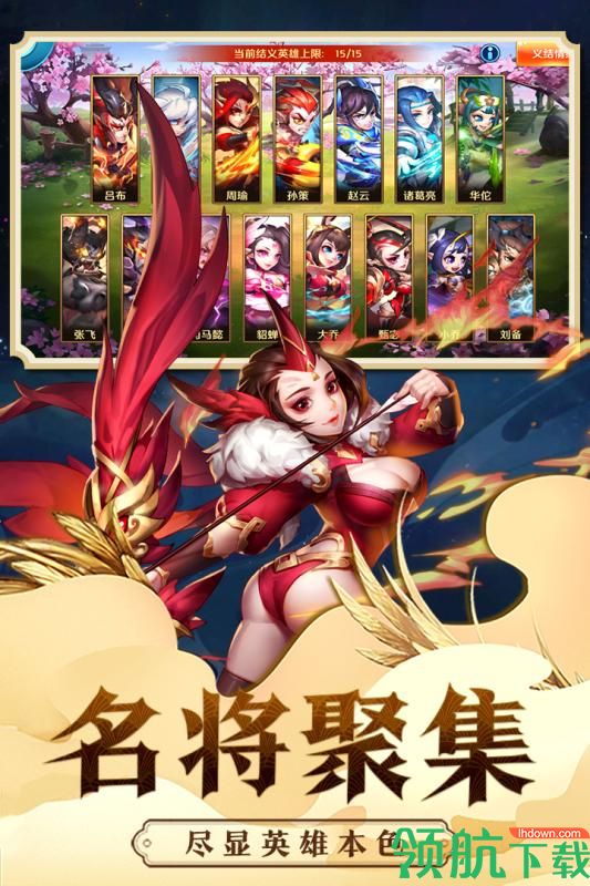 三国群英汇聚,人才辈出,百位武将,尽可收入麾下。通关副本解锁武将,三顾聚贤馆,寻访你喜爱的武将,赵云,吕布,神将在手,天下我有。独特的武将培养系统,突破你的武将,变得更加强力,为你的武将装备上神器,洗炼装备,提升技能属性。
