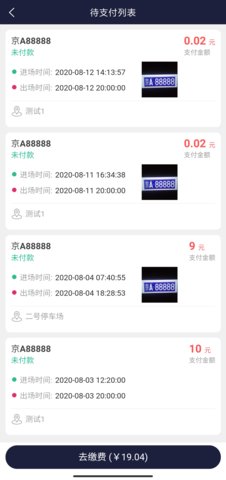 二:缴费记录查询,可以查询当前车辆的所有历史缴费信息;包括停车地点.停车时间等;