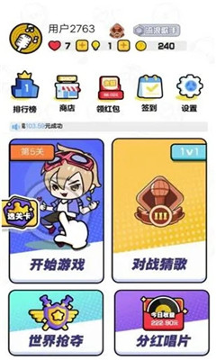 趣味猜歌福利版是一款测试玩家音乐库的游戏。在这里,你必须猜猜剪辑来自哪首歌。这不是很简单吗?完成通关任务后,可获得相应的红包奖励。如果你连续获胜,你还可以得到一个大红包。多样化的游戏模式可以给你带来非常丰厚的回报。是时候展示你的实力了,中国小曲库现在不再低调了