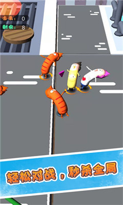 香肠大战派对,游戏采用有趣的卡通图片,各种不同颜色的各种角色供玩家选择。在持续挑战中,解锁更多级别的挑战模型。同时,整体操作简单易行。获胜后,您可以交换更有趣的皮肤