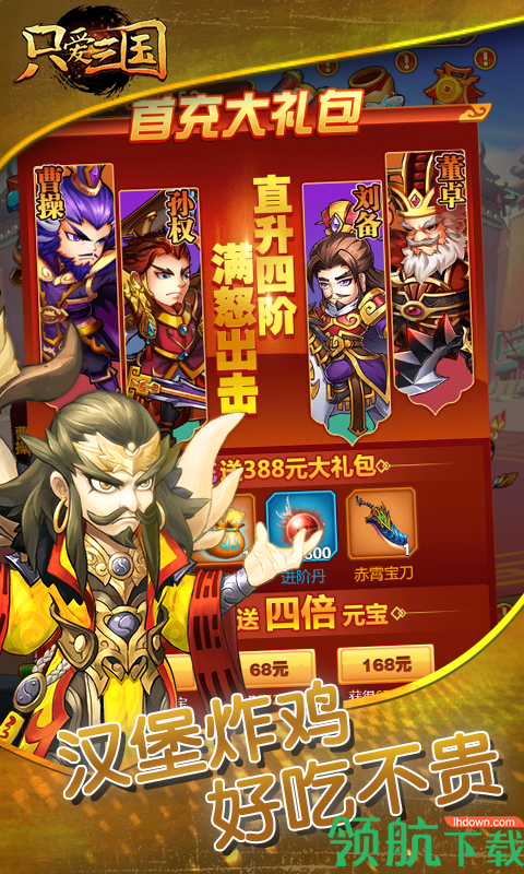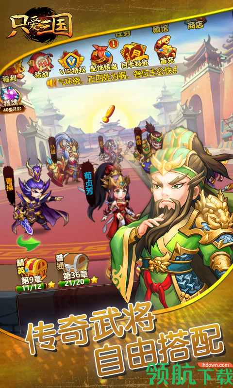 《只爱三国》手机游戏是一款以三国为主题的角色扮演游戏。在游戏中,您只需通过简单的配对熟悉各种角色,在三国历史背景下进行新的突破体验,轻松组队完成配对阵容的超激情体验效果。在游戏中,玩家可以随意选择他们喜欢的角色,锻炼他们的能力,强化他们的武器,并跟随他进入一个充满战争的时代。在这里,你可以建立自己的力量攻击他人,招募更多三国英雄,与你一起踏上建国与和平的战争征程。