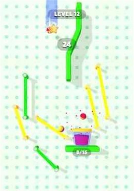橡皮筋弹球是一款简单有趣的休闲闯关游戏,游戏操作很轻松玩法很简单,需要在玩家需要连接橡皮筋改变下落球球的位置,尽量的让球球全都掉落在游戏里的小桶之内从而获得更多的积分完成关卡挑战。