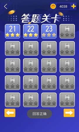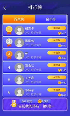 3、玩家独自答题,不需要挑战任何人将所有关卡的金币赢到手。