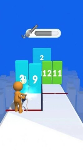 4、左右滑动屏幕控制角色挪动,停止躲避和搜集,走到数字最小的墙壁前会自动射击