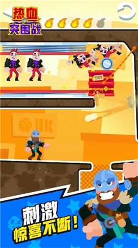 热血突围,一个激动人心的战斗游戏。游戏中有大量的地图场景和丰富的游戏挑战。实时决斗游戏结合了射击和格斗,玩家可以用自己的专属武器轻松完成任务