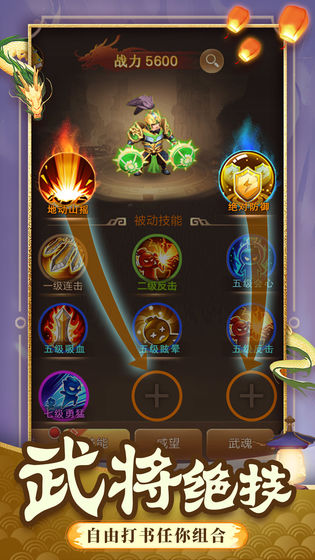3.每一个武将都有着酷炫的技能,你可以将技能自由组合起来,让游戏极具观赏性。