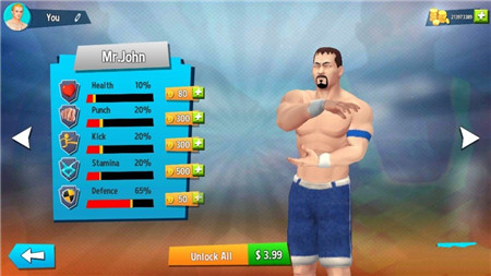 擂台摔跤冠军,在游戏中,玩家真正成为一名职业摔跤手,体验刺激的摔跤比赛。同时,游戏简单易用。玩家可以随意选择自己喜欢的角色,并在挑战竞技场进行精彩的决斗