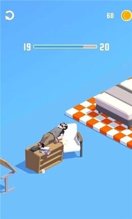 一款轻松解压的休闲益智游戏,具有各种三维场景描述和简单的游戏玩法。玩家需要点击屏幕控制人物自由上下,在整个过程中,我们需要掌握力量、方向和频率,让男人能够穿越各种障碍物和物体,最终能够安全地躺回床上,享受趣味突破的玩法,带着不断的惊喜和浓厚的兴趣