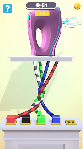 不同颜色的绳子相互缠绕形成不同的结,玩家需要做的是找到缠绕的节点并逐个解开