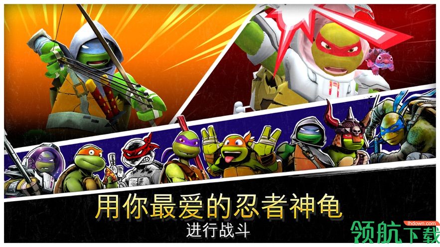 海龟力量:帮助莱昂纳多在遇到克朗军队时拯救他的忍者海龟兄弟和变种人同伴。使用你最喜欢的忍者龟角色与莱昂纳多进行5-5决斗。
