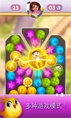 这是一款由《糖果传奇》开发者King创作的新益智游戏。连接3颗或3颗以上相同颜色的珠子制作珍贵珠宝,在招数用尽之前完成目标。在这个奇妙的解谜之旅中,你可以连接美丽的彩色珠子,享受一个崭新的旅程。