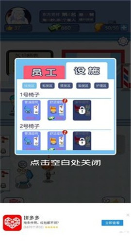 在基础设施完成后,玩家可以升级装饰、解锁新发型、提升和培养员工等