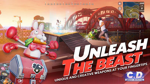 你将降落在一个由13个不同地区连接而成的4x4km超大地图上。带着你手中的特制破坏工具,想方设法在百人死亡竞赛中存活下来。