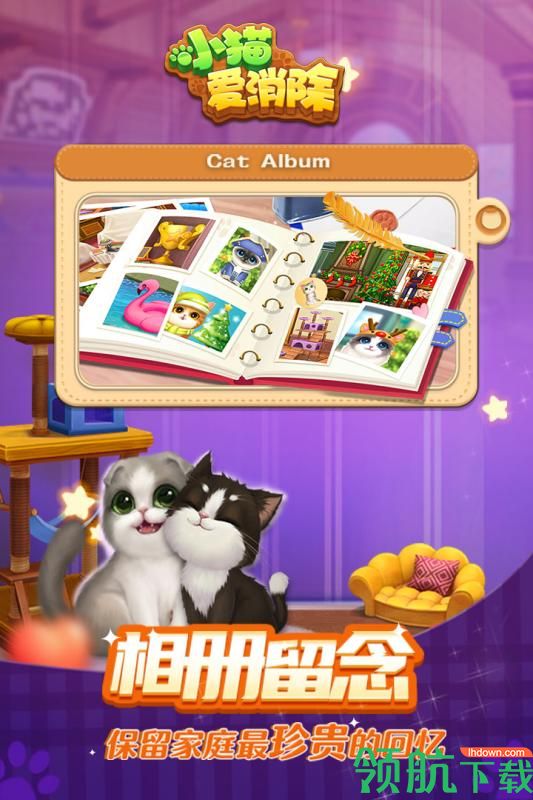 小猫爱消除是一款猫咪题材的模拟养成+消除建造类游戏,以风靡全球的消除玩法为核心,跟随引人入胜的剧情参与到温馨明亮的装修玩法之中,与超萌可爱的猫咪结下深厚的羁绊。
