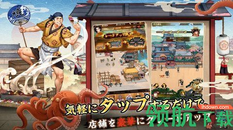 操作简单,店铺管理有趣。你可以体验独特的浮世绘所表达的江户城市。点击商店升级并赚钱,即使你忽略了它