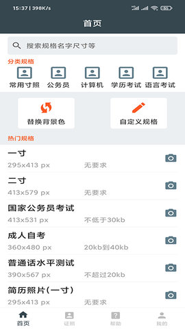 考公务员需要报名照?找工作需要求职照?出境旅游需要护照、签证照?用专业证件照app!专业的事情交给专业的人来办!一寸照、公务员证件照、四六级考试、美国签证......500多个规格,你能想到的场景证件照,我们都有。