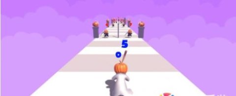 1、控制不断向前奔跑的南瓜头幽灵左右移动,拿起武器,增加自己的数字。