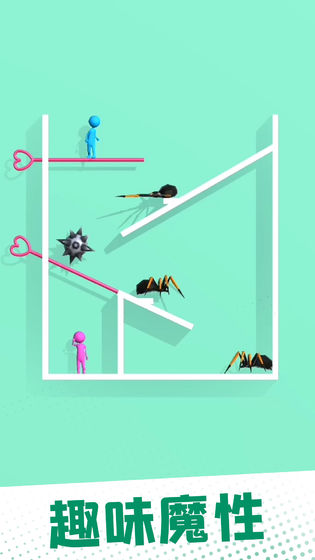 爱的魔力别针是一款有趣的休闲解压游戏,爱的魔力别针游戏玩家需要帮助男主女主重逢,开动想象力,合理拉动别针,解除他们之间的障碍吧。