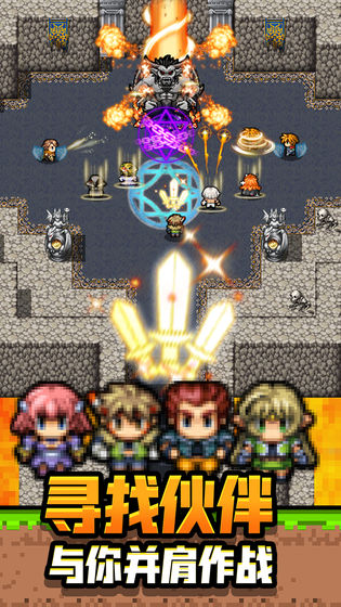 升级勇者,招募伙伴,挑战魔王军团,拯救世界!