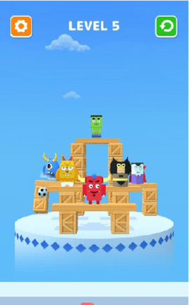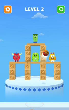 一款有趣的休闲小游戏,有趣的闯关方式,在前方的平台上有着一个木制的塔,这样有着各种毛骨悚然的怪物,玩家的目的就是将这些怪物全部击败,将塔上所有的怪物击败,这样就可以顺利的过关了。游戏内容蛮有趣的,超多关卡自由体验,想玩就玩,轻松感受一下这个游戏中的乐趣,各个游戏关卡能够给你带来无穷的乐趣。