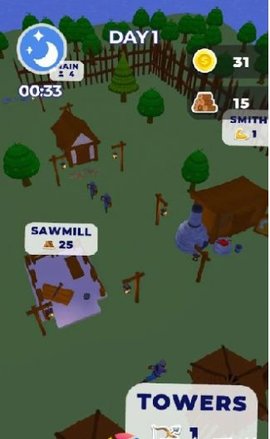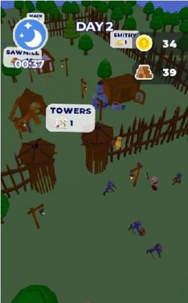 1.游戏也分为白天和晚上。白天主要是安全的。伐木工人将外出收集木材,为建筑提供资源基础。夜间,伐木工人休息,士兵们出来攻击敌人。