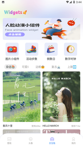 多种多样的小组件,拥有图片小组件、运动步数、倒数日、数字时钟等功能,能够满足您对桌面设计的日常所需。
