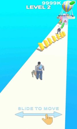 冲刺掠夺,一款有趣的休闲游戏。游戏中有许多不同的场景,玩家可以控制你的角色左右移动,避开障碍物,获得游戏金币,解锁更多新角色皮肤和游戏物品。玩家需要小型巡逻保安和路上的各种障碍物,最后乘热气球离开