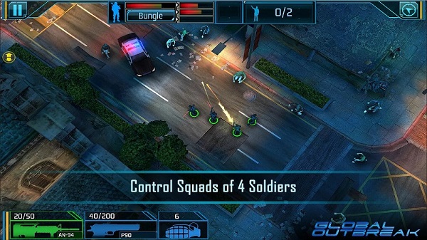 每一次执行任务时都会有最多四名队员,任务的种类非常的多,包括了定点清除丧尸、拯救科学家等,操作更是简单,玩家只需要使用手指划过目标,队员们就会对目标进行射击,玩家也可以同时划过多个目标,这样阿尔法小队的队员就会在锁定目标的情况下进行移动,而在出发时地图上会使用信号弹做出任务地点的标记。