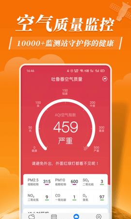 6、空气质量监测:小时级PM2.5监测和全国空气质量排行榜,关注空气质量,关爱你的健康;