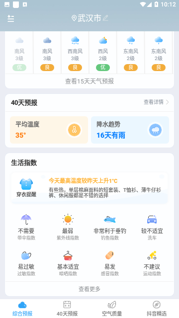 3.可以根据天气数据自动给出生活建议,能够有效的防止中暑、感冒等;