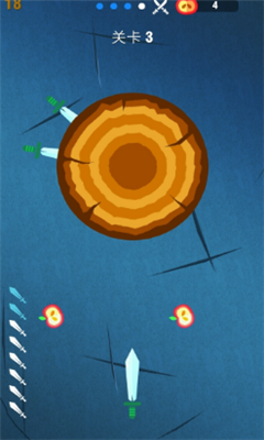 间或在树轮上有苹果,如果飞刀可以插到苹果,那么会有额外的得分哦。