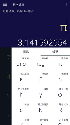★超多常数:内嵌上次运算,寄存器,圆周率,自然底数,法拉第,普朗克,约化普朗克,欧拉,黄金分割,光速,阿伏伽德罗,理想气体,卡钦,玻尔兹曼,万有引力,磁通量子,真,假,电子质量,质子质量,中子质量。