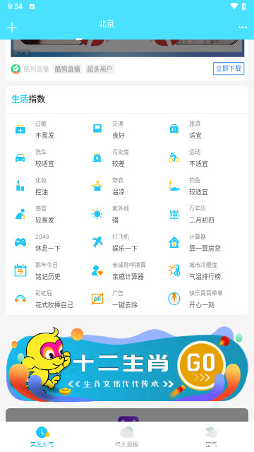 2、紫外线指、运动、洗车、旅游等八大实用生活指数,是你