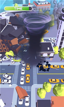 游戏采用毁灭一切的方法,最大限度地给玩家带来减压的体验。玩家需要做的事情很简单。他们只需要控制自己的龙卷风进入城市,然后破坏场景中的各种设施。