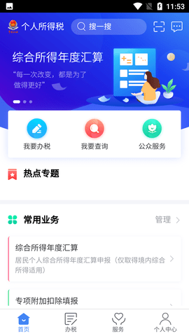 个人所得税APP由国家税务总局主办,是为贯彻落实党中央、国务院提出的个人所得税综合与分类相结合的税制改革要求,保障全国自然人纳税人及时享受税改红利而推出的一款移动办税工具。主要支持个人所得税综合所得年度汇算等纳税申报、专项附加扣除信息填报、收入纳税明细查询、异议申诉、涉税证明材料上传、委托代理等涉税业务办理,并配套提供在线咨询、热点问题、帮助中心等功能。