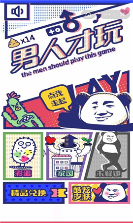 男人才玩小游戏是一款非常别具一格的表情包冒险类游戏。游戏的每一关都十分的有新鲜感玩家可以控制熊猫人战士进行闯关,解锁各种有趣的皮肤,游戏简单有趣,是真男人就快来挑战吧!
