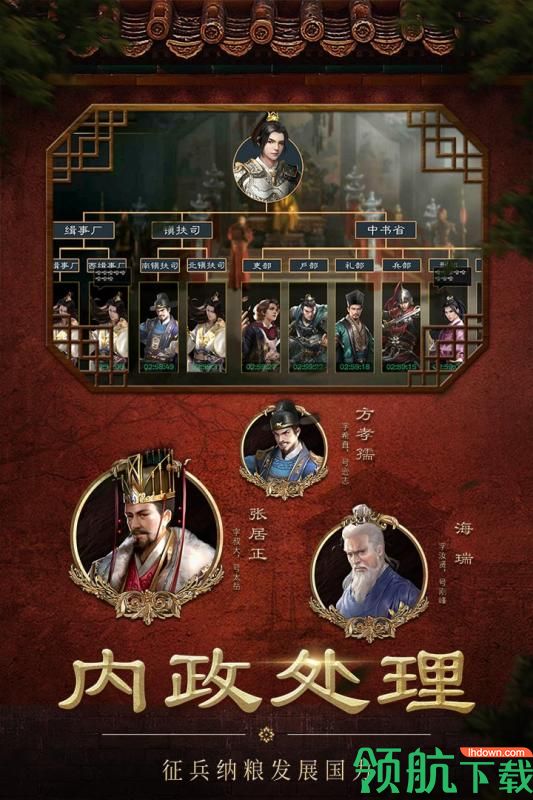 养成系统:日常处理政务要事,培养文臣武将,励精图治国库充盈。