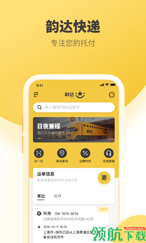 韵达货运推出的掌上物流平台软件,方便广大韵达用户使用,一键呼叫寄件员,轻松寄快递;还可以在手机上随时查看自己的快递情况,到哪了,还有多久送到;有什么问题,还可以很方便的联系客户进行处理。