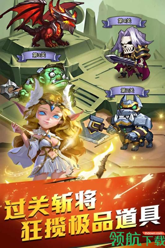3、竞技场pk,副本剧情挑战,随心搭配英雄阵容挑战,招募培养英雄,让他们自动征服战斗