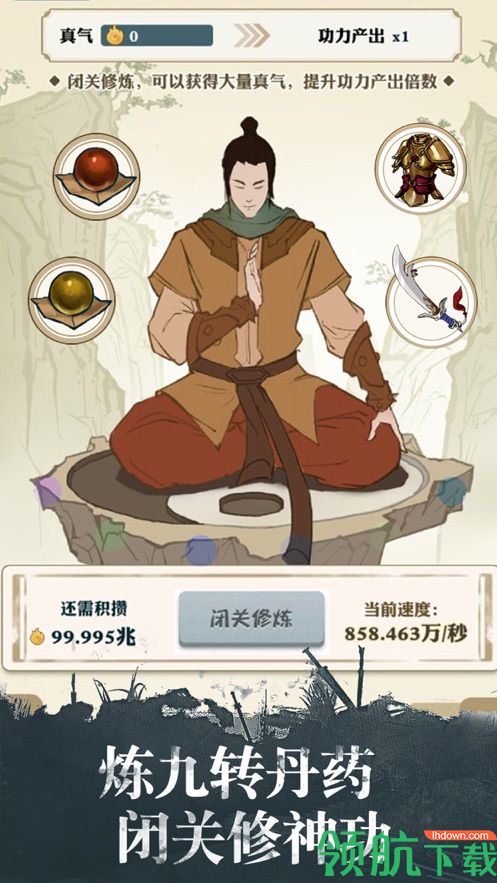 一款武侠题材的挂机放置游戏,游戏采用手绘的风格进行展现,玩家在游戏中扮演一位初出茅庐的江湖少侠,修炼内功火气更多的武侠秘籍,然后重振宗门!游戏除了玩法还有丰富的游戏剧情可以进行探索!