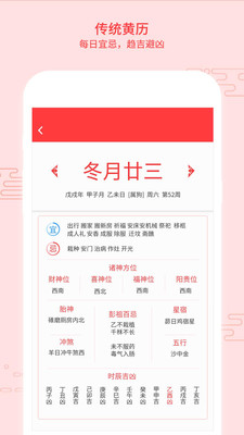 3、通过软件的老黄历功能可以帮助大家轻松的挑选好的日子,让自己可以有更好的运气。