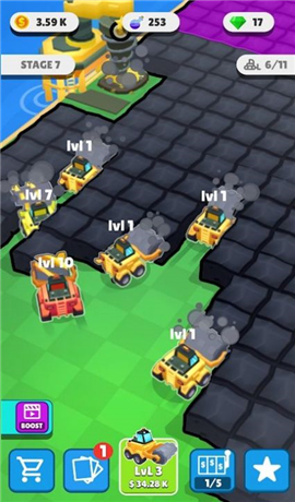 3、闲置压路机游戏是一款非常有趣的娱乐游戏。收集各种汽车。